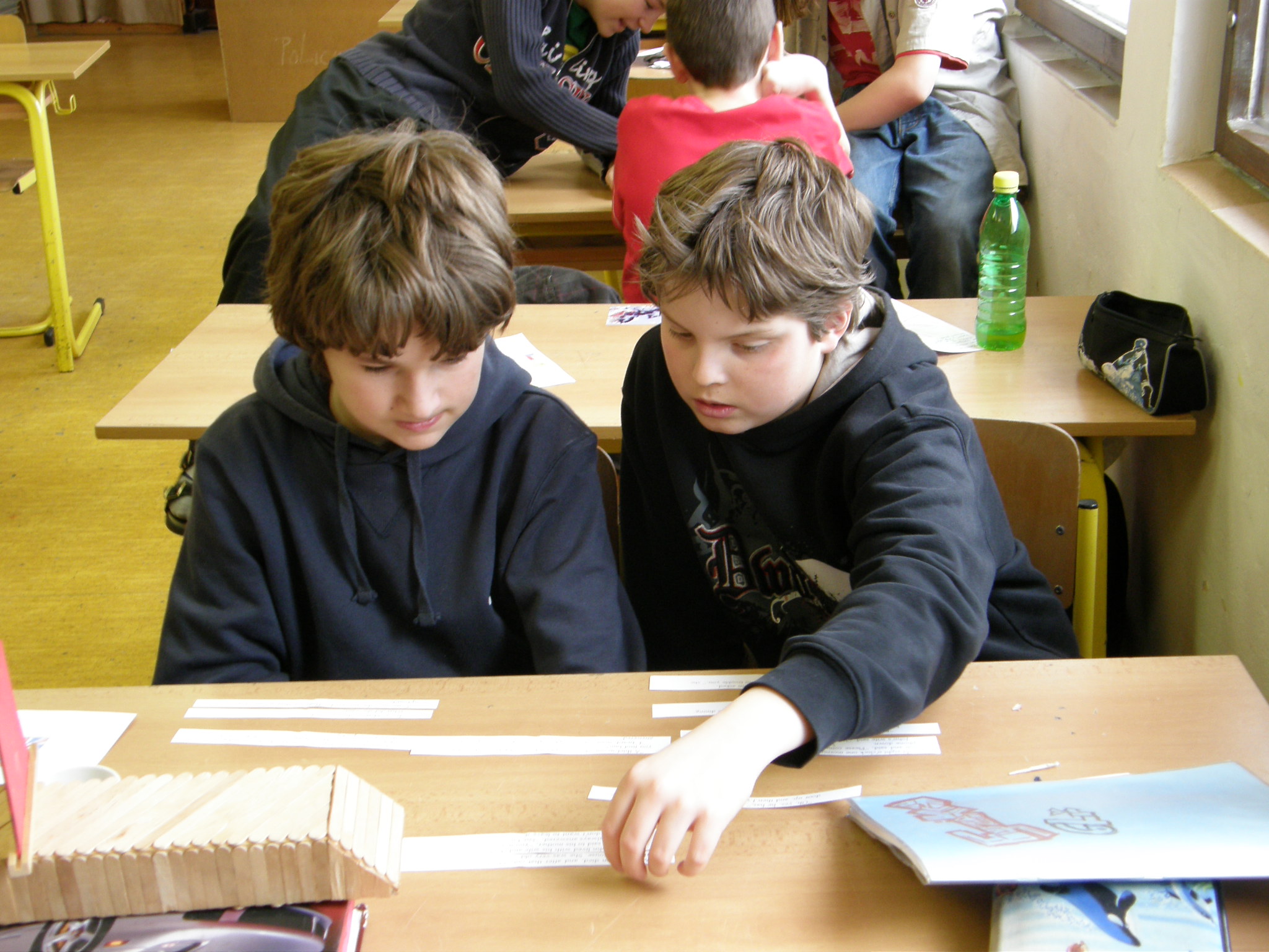 V průběhu let jsem se přesvědčil, že i starší děti nejvíce motivuje, pokud s nimi konverzujete o nich samých, o jejich kamarádech, zájmech, rodině, a podobně. Tyto děti motivuje učit se věci, které mohou opravdu použít. Jsem pro používání učebnic, pokud tyto obsahují náměty na výše uvedená témata. Pokud takovou učebnici neobjevíte, je třeba, abyste sami náměty vytvářeli. Učebnice by v každém případě měla být jen doplňkem výuky – výuka by měla probíhat konverzačně. Vždyť jazyk je především nástrojem k mluvení! Organizujte konverzaci ve dvojicích či skupinkách, nebo v soustředných kruzích, kde ve vnitřním kruhu děti stojí zády k sobě, a ve vnějším kruhu jejich kamarádi, čelem k nim. Na vhodný povel se vnější kruh pootočí o jeden úkrok doprava a konverzace může pokračovat s novým partnerem. Na soustředné kruhy si děti musí zvyknout, ale po krátké době si je oblíbí, a přestanou během rozhovorů lumpačit. Zkuste s pokročilejšími dětmi také krátká, maximálně minutová, řečnická cvičení na dané téma, s následnou diskusí. Učebnice mějte jen jako zpestření. Dobrá učebnice je také především materiálem na domácí samostudium, nebo podkladem pro domácí úkoly.