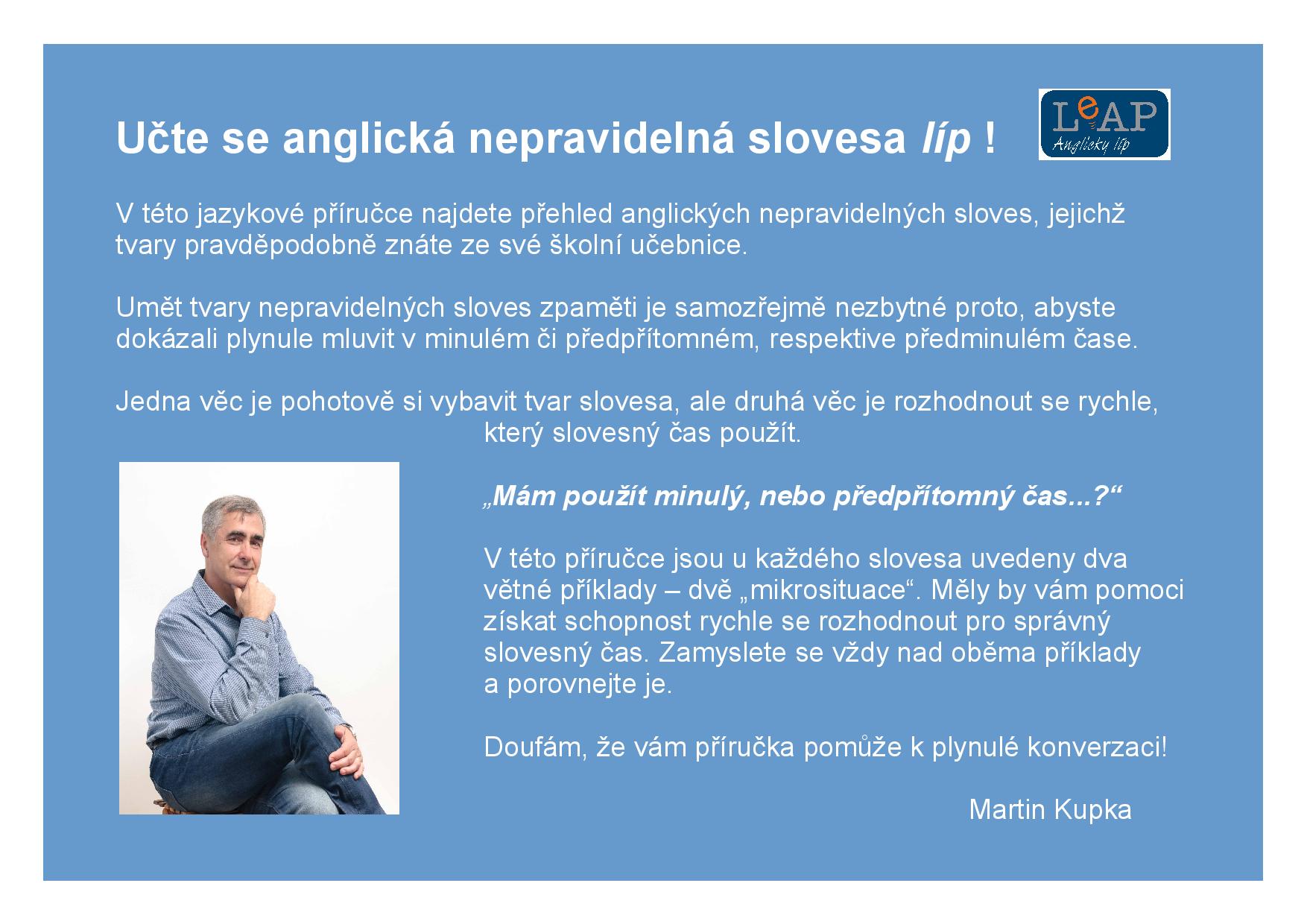 Podívejte se na NÁHLED jedné z 12 stran příručky Anglická nepravidelná slovesa líp.